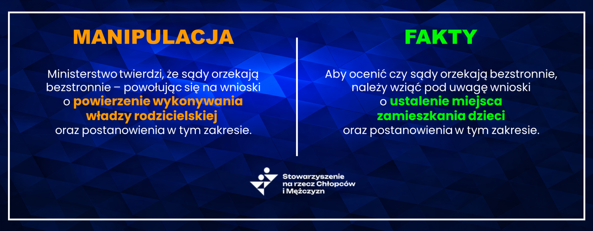 Jednocześnie złożona przez nas w lutym 2025 roku „Petycja o rozszerzenie sprawozdań statystycznych sądów powszechnych o informację w zakresie określenia przez sąd miejsca zamieszkania dziecka przy matce lub ojcu” – została przez Ministerstwo Sprawiedliwości odrzucona.