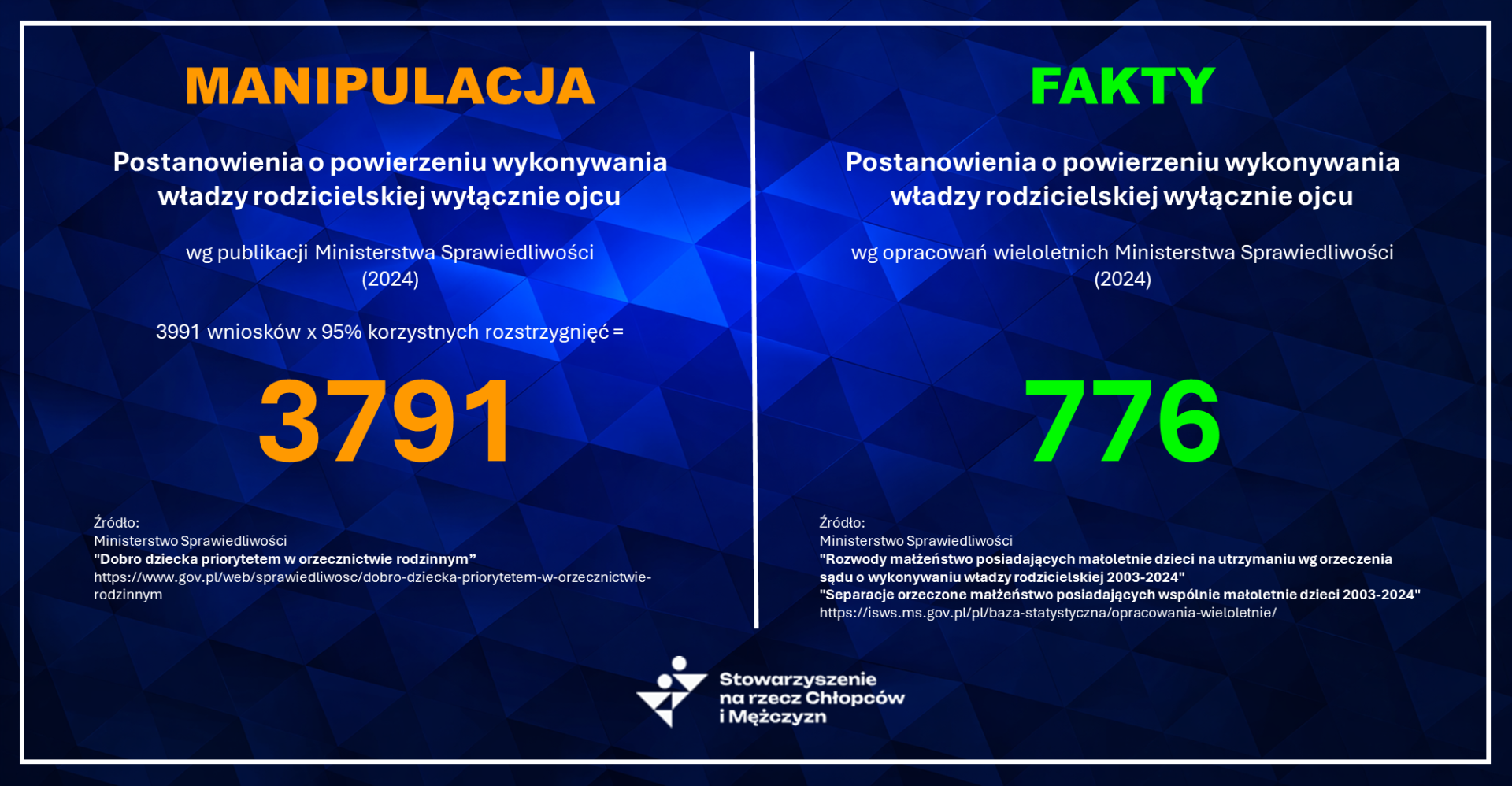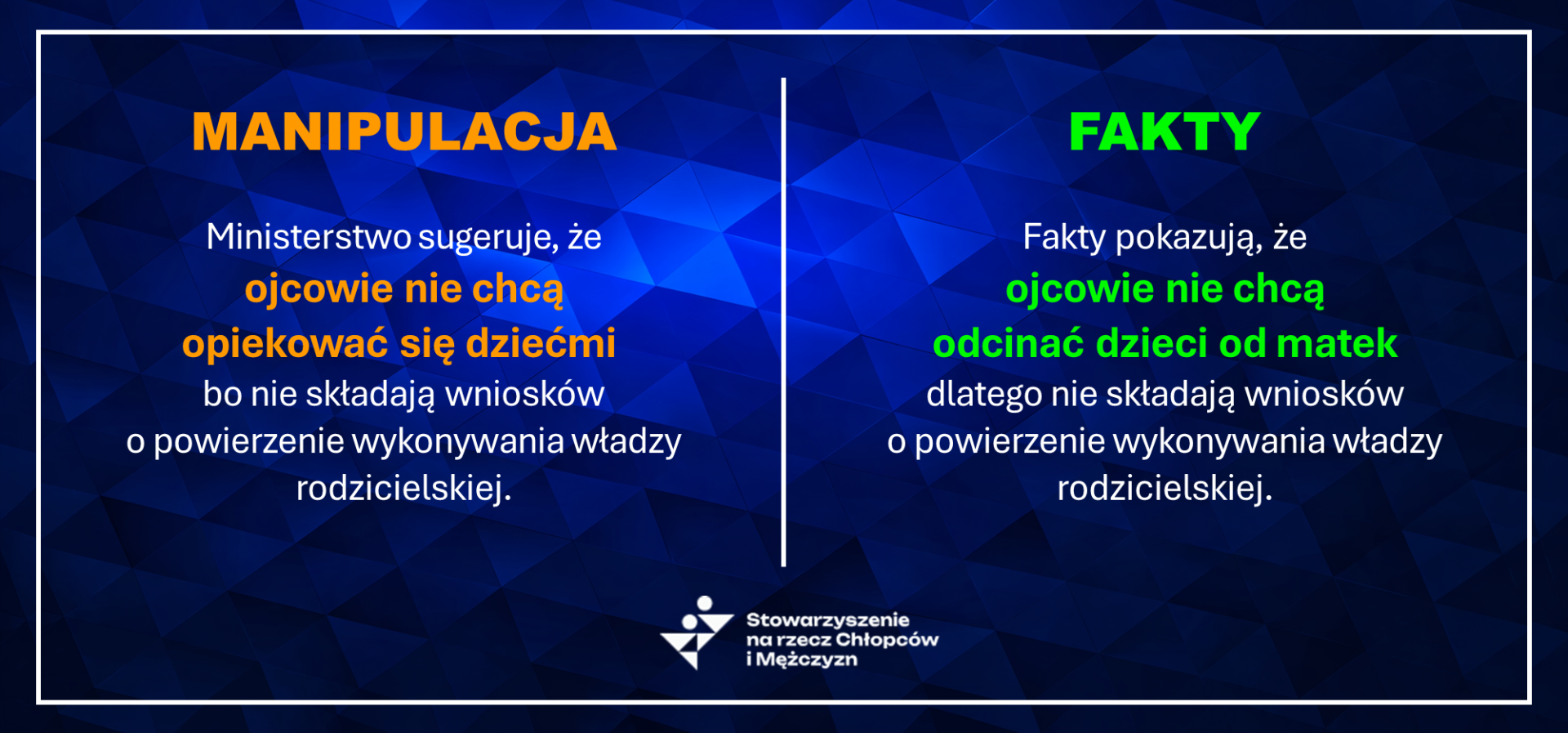Czytając dokument ministerstwa, oraz słuchając głosów dziennikarzy czy polityków, można odnieść wrażenie, że skoro ojcowie nie składają wniosków o powierzenie wykonywania władzy rodzicielskiej – to widocznie nie chcą zajmować się dziećmi. Tyle, że to manipulacja.